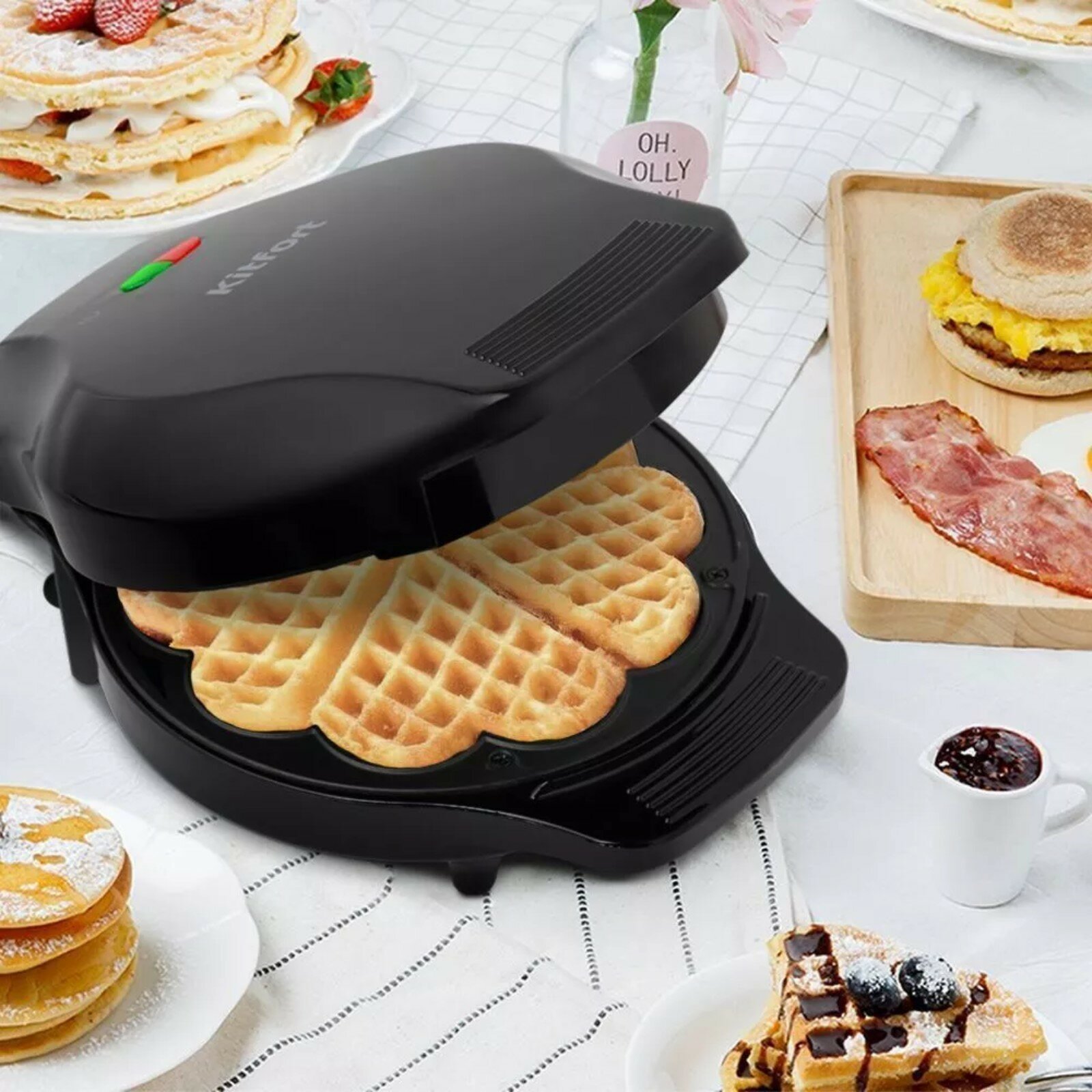 Отличная вафельница .? Спасибо фирме Kitfort. Очень удобная в использовании, нагревается быстро и все вафельки прожарены ?. Мои домочадцы не могли оторваться от этой вкуснотищи.? Еще раз большое спасибо!