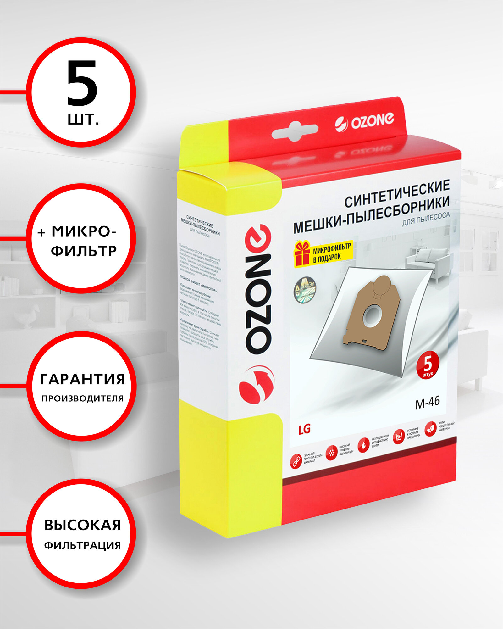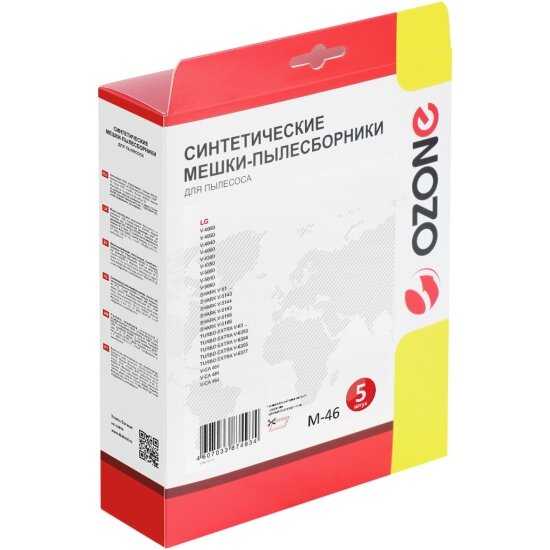 M-46 Мешки-пылесборники Ozone синтетические для пылесоса, 5 шт + микрофильтр