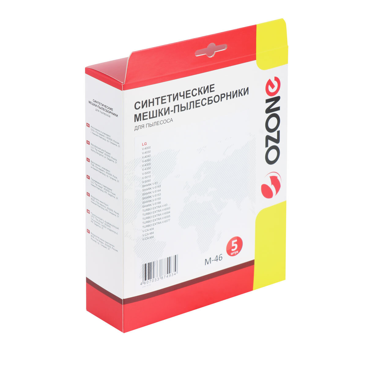 Пылесборник OZONE M-46, синтетический материал, многослойный, микропоры, материал фланца картон