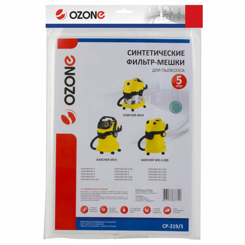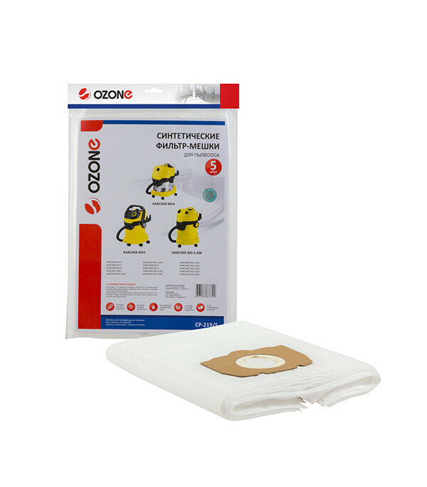 Синтетические фильтр-мешки Ozone CP-219/5 для пылесоса KARCHER MV 4, MV 5, MV 6, WD 4, WD 5, WD 6, 5 шт