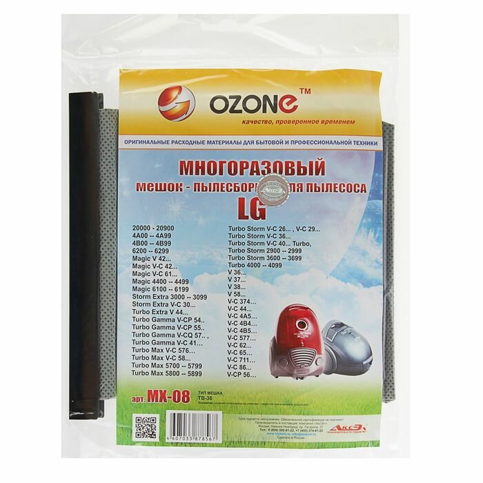 Многоразовый мешок для пылесоса LG, OZONE MX-08, арт. OZONE MX-08