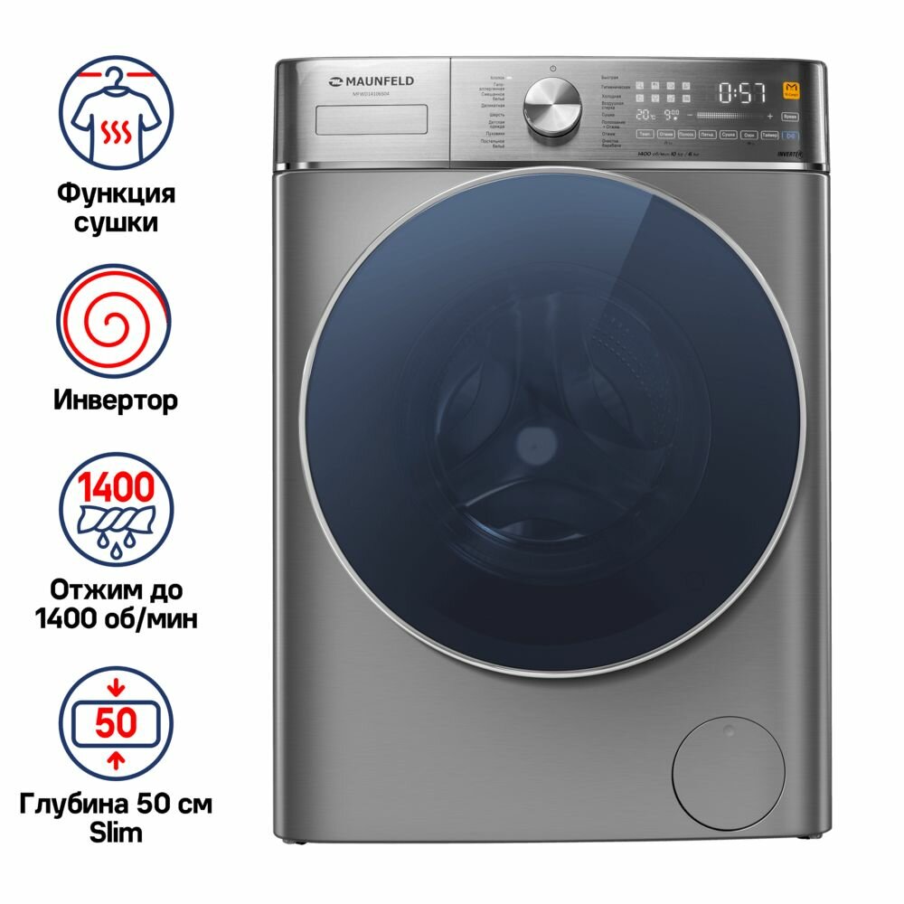 Стиральная машина MAUNFELD MFWD14106S04, серебристая/синяя интересное: