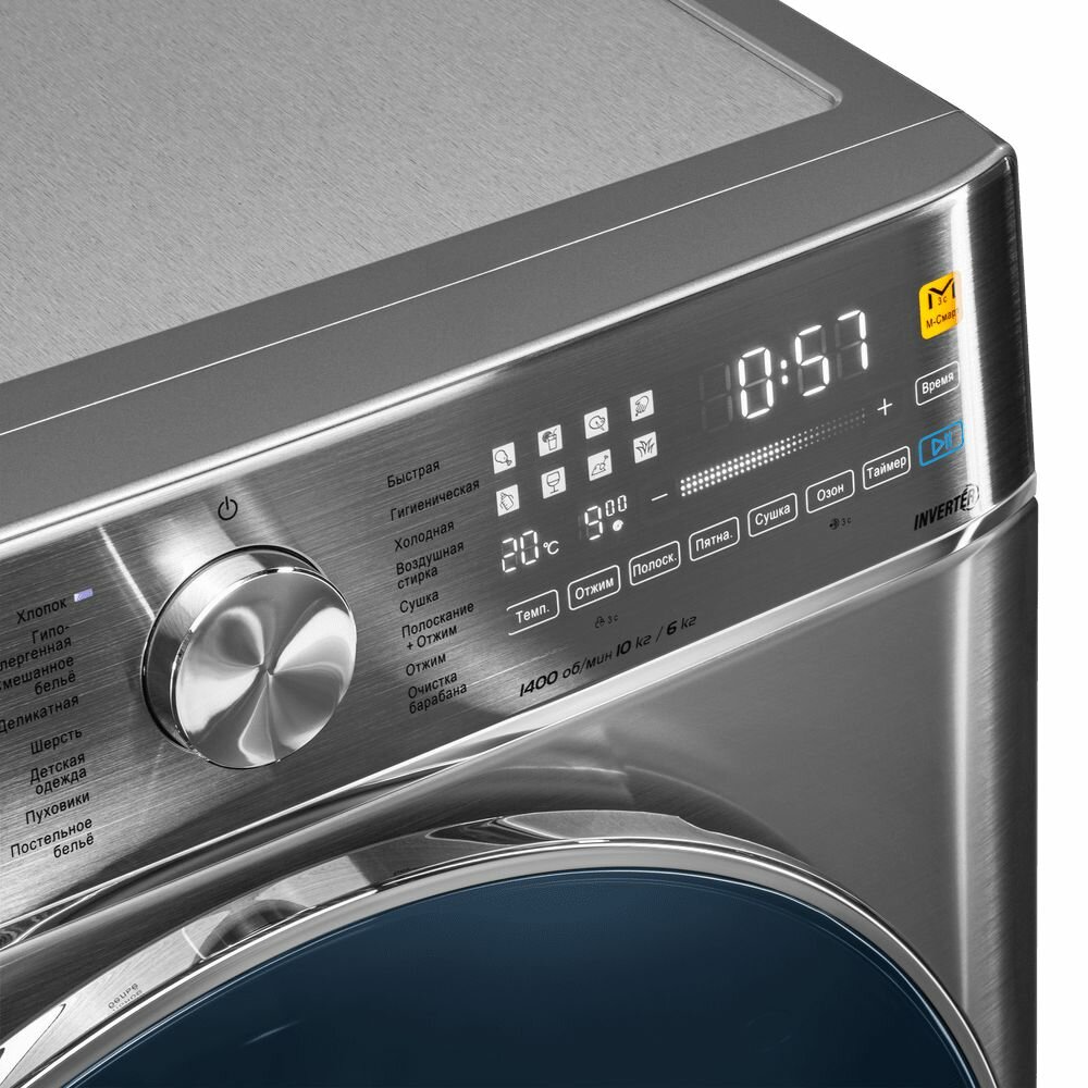 Стиральная машина Maunfeld MFWD14106S04 класс: B загр.фронтальная макс.:10кг (с сушкой) нержавеющая сталь инвертер