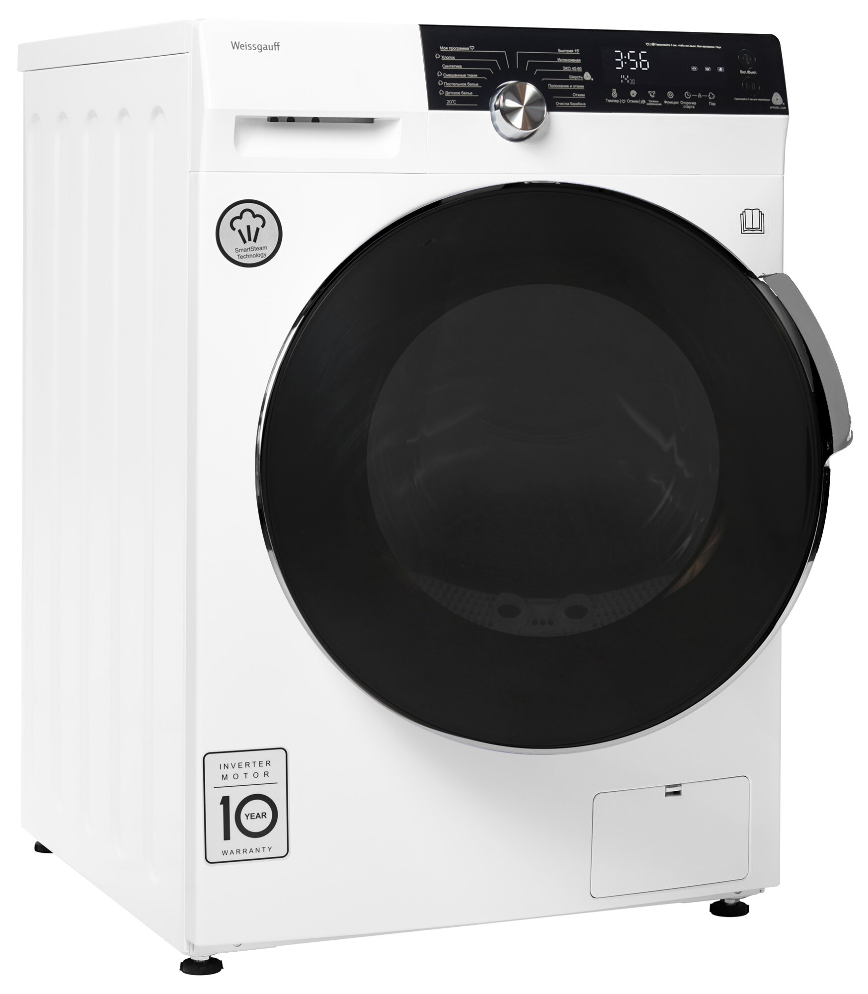 Стиральная машина Weissgauff WM 5649 DC Inverter Steam,3 года гарантии, Установка в колонну, загрузка 9 кг, 1400 оборотов, 14 программ, быстрая стирка 15 минут, режим очистки барабана, тихий режим, защита от протечек интересное: