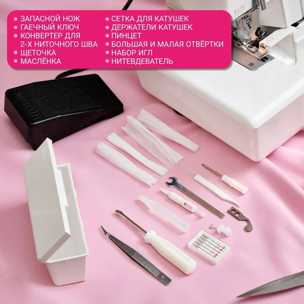 | Дополнительные функции | отключение ножа, регулировка ширины обреза ткани, дифференциальная подача, регулировка прижима ткани |