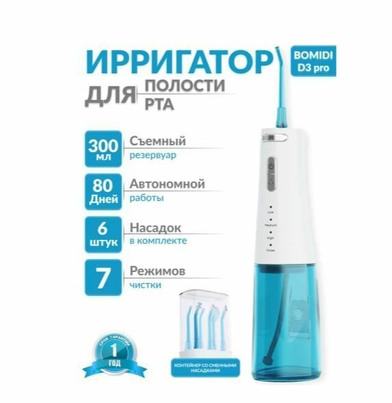 Портативный ирригатор Bomidi D3 Pro для ухода и гигиены полости рта с 6 насадками