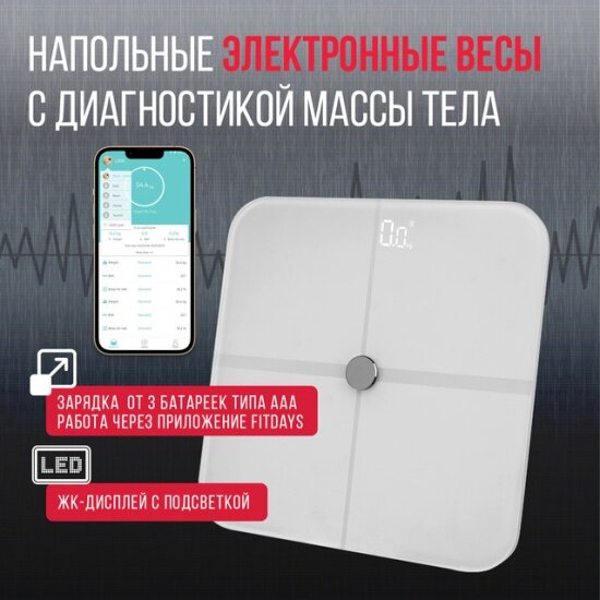 Умные напольные диагностические весы с определением 12 показателей и синхронизацией по Bluetooth