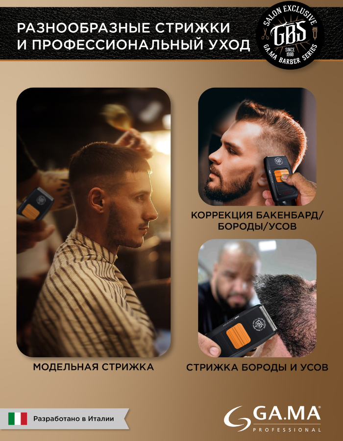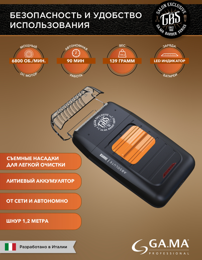 Электробритва GA.MA GBS ABSOLUTE SHAVER, Li-Ion, мощность 4 Вт, чёрная (для барберов)