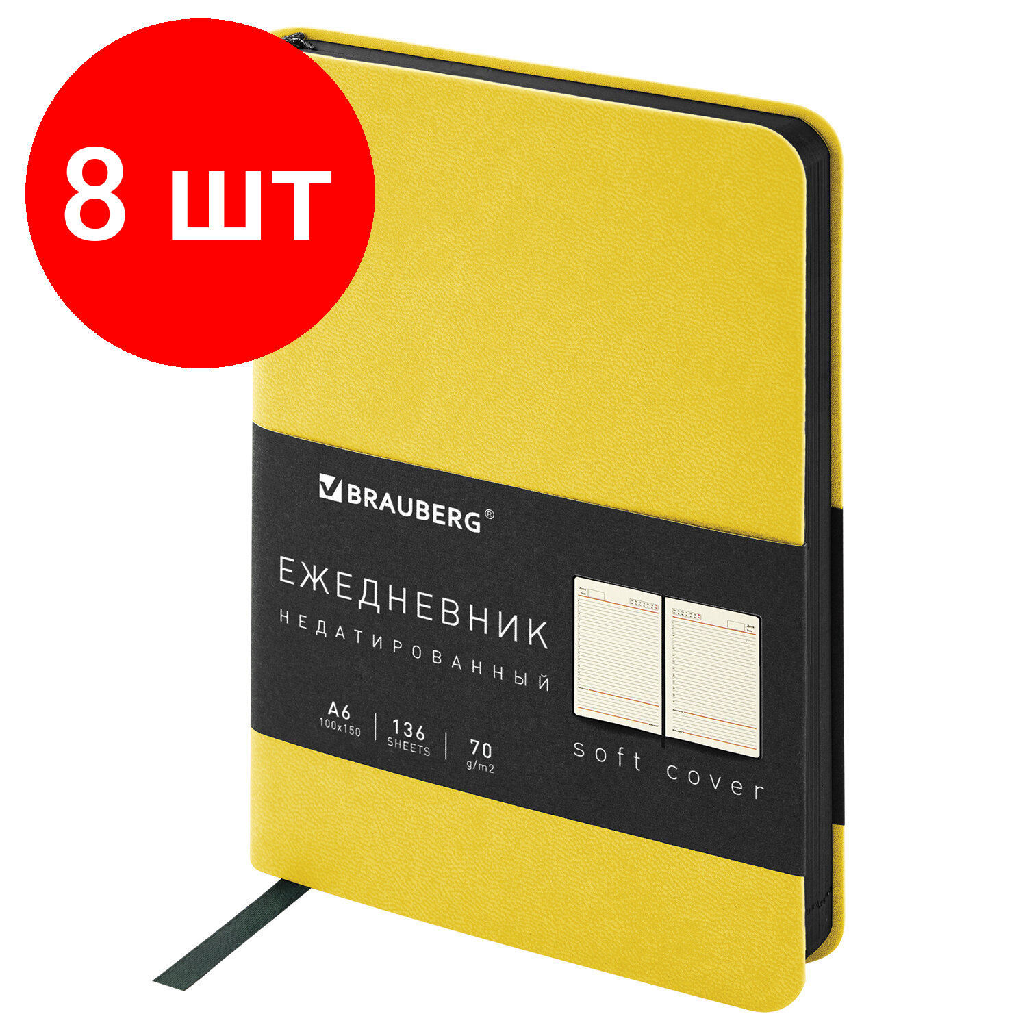 СохранитьКомплект 8 шт, Ежедневник недатированный малый формат 100х150мм под кожу желтый BRAUBERG Metropolis, 113303 интересное: