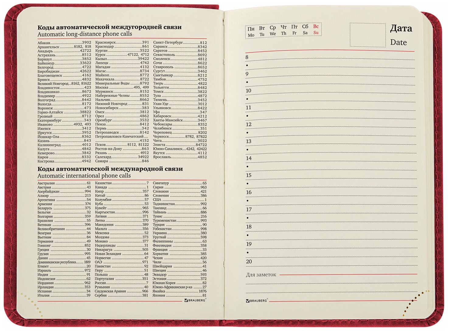 Ежедневник малый недатир. Brauberg "Status", А6, 160л., под кожу, красный