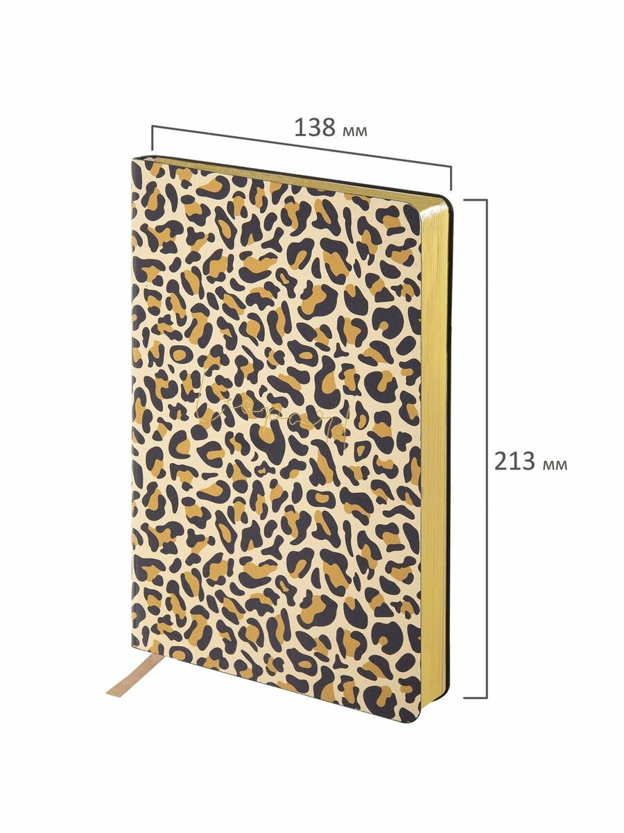 Ежедневник недатированный А5 (138х213 мм), BRAUBERG VISTA, под кожу, гибкий, 136 л, "Leopard", 112038