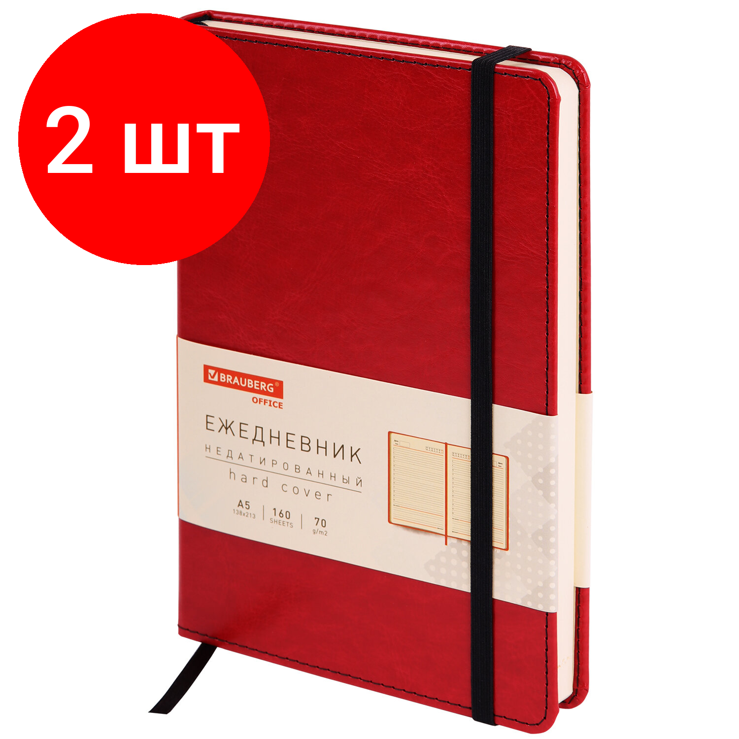 Купить Комплект 2 шт, Ежедневник недатированный с резинкой А5 138х213мм под кожу красный BRAUBERG Office, к, 113291