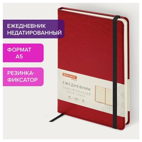 Ежедневник недатированный А5 138х213 мм BRAUBERG "Office", под кожу, 160 л., красный, 113291, 113291