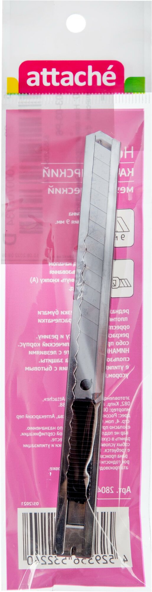 Attache Нож канцелярский 9мм Attache металлический, фиксатор, цв.металлик