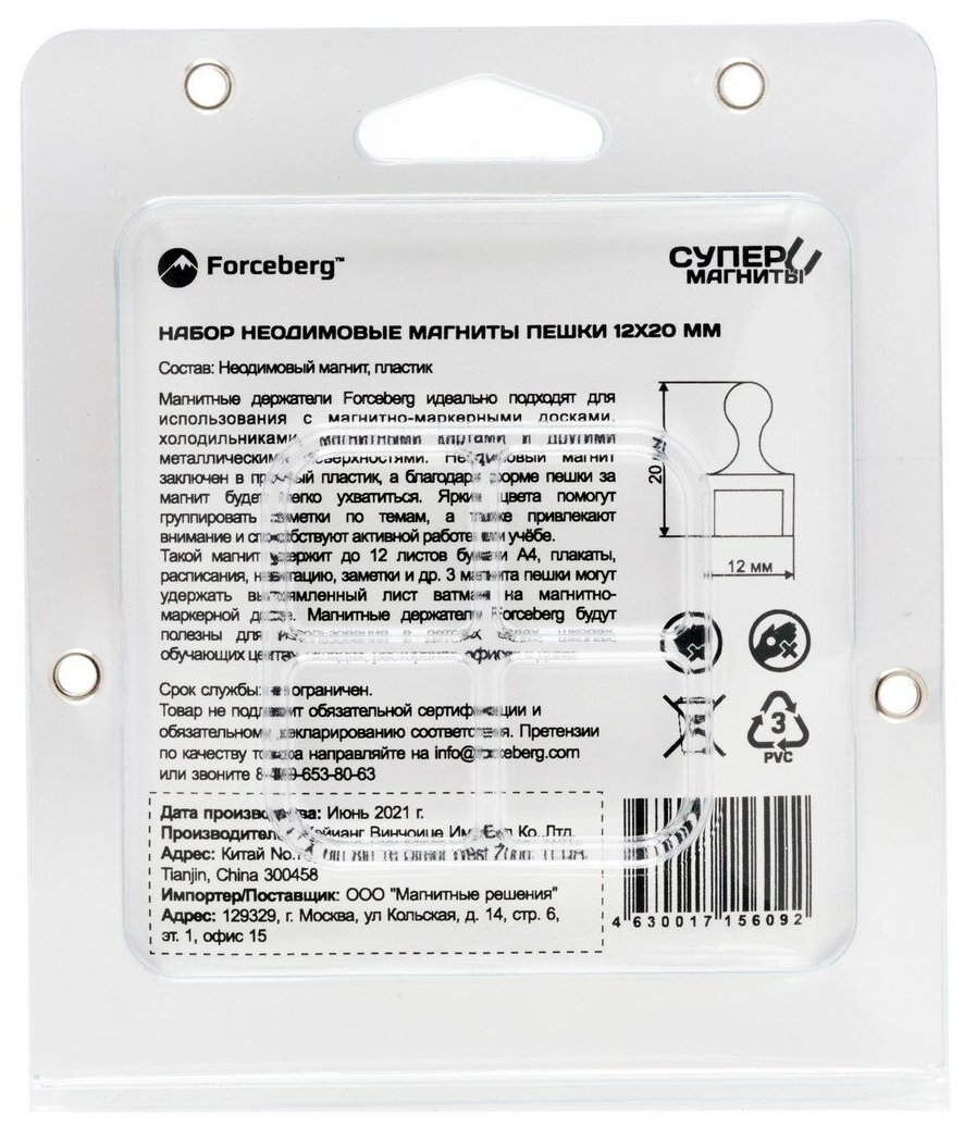 Forceberg Набор неодимовых магнитов для магнитной доски Пешка 12x20 мм, 16 шт 9-3581250-016 интересное: