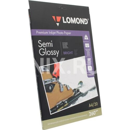 Фотобумага Lomond A4, 260 г/м2 (20 листов) полуглянцевая, ярко-белая (Semi Glossy Bright) (1103301)