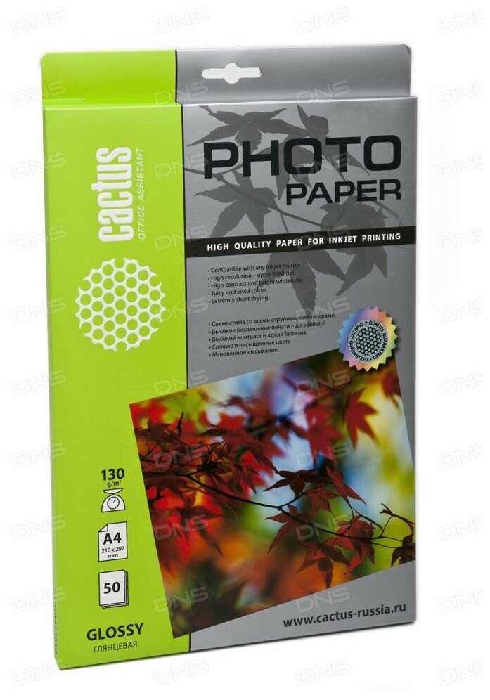 Фотобумага A4 130 г/м² глянцевая, 50 листов, односторонняя Cactus CS-GSA413050 (CS-GSA413050)