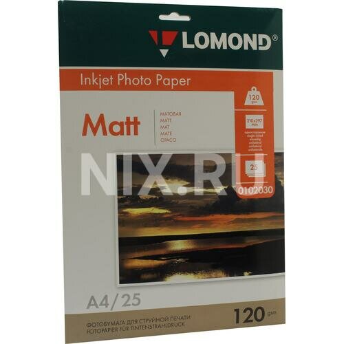 Фотобумага А4, 120 г/м2, 25 листов, односторонняя, матовая, Lomond 0102030