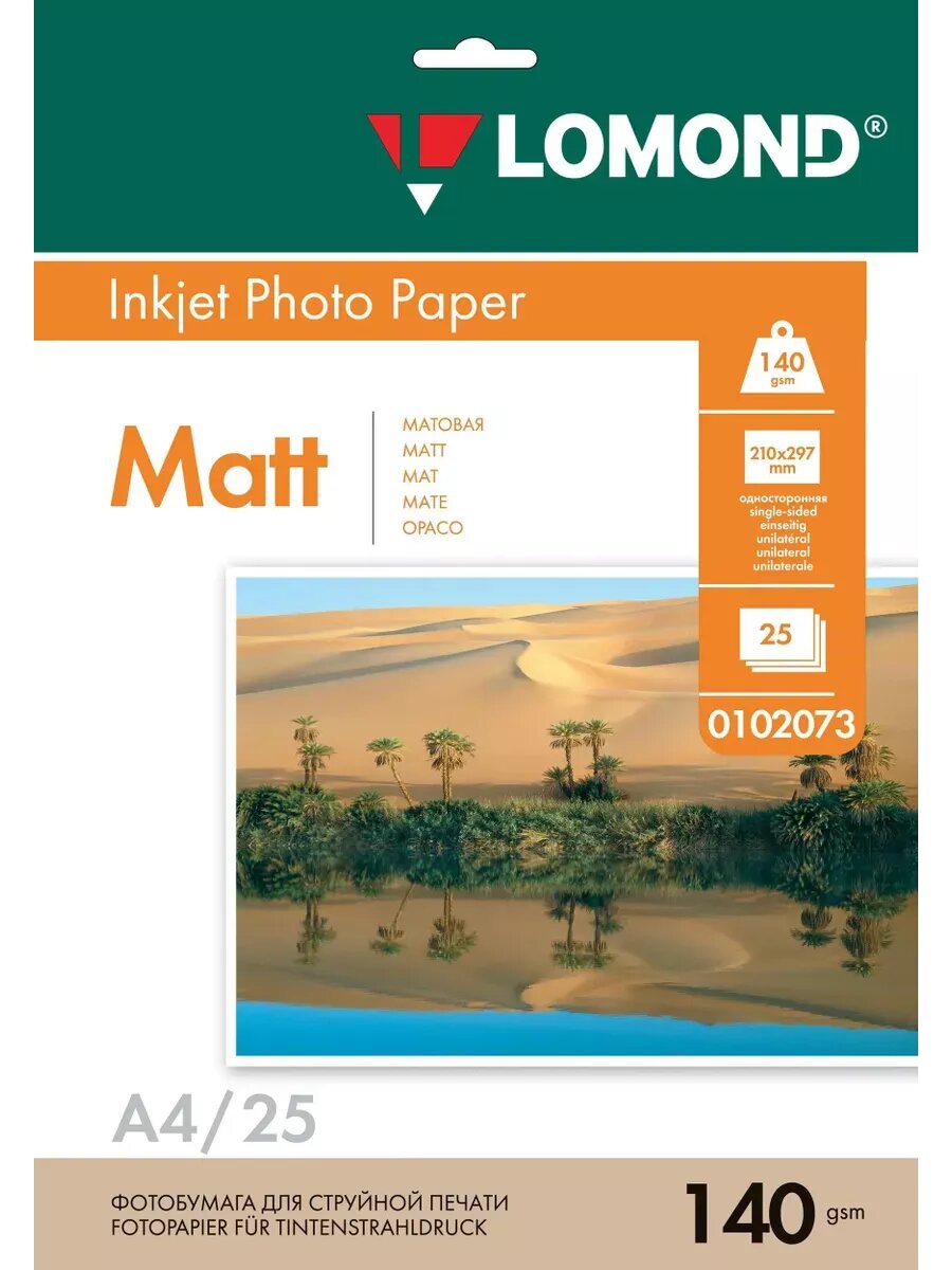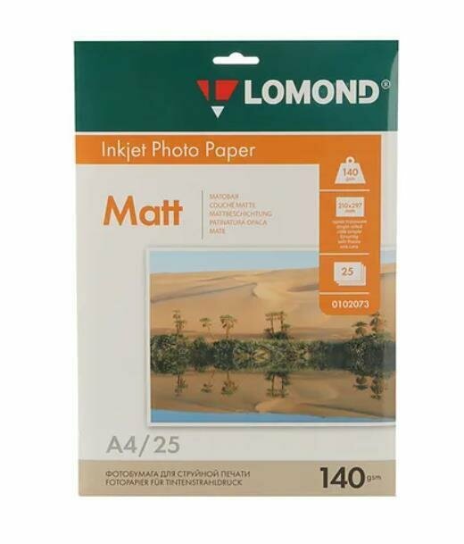 Фотобумага Lomond A4 матовая, односторонняя, для струйной печати, 25л, 140г/м2, белая, 0102073