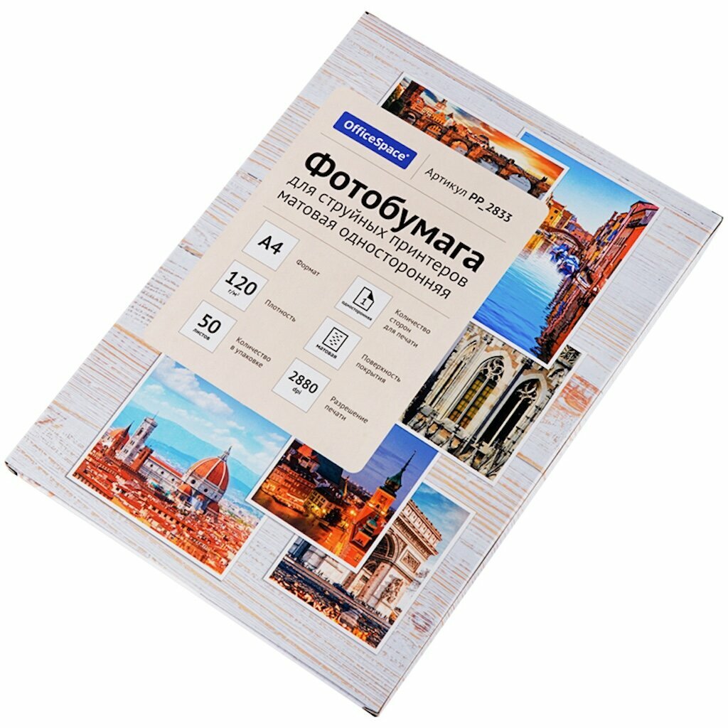 Фотобумага А4 для стр. принтеров OfficeSpace, 120г/м2 (50л) матовая односторонняя