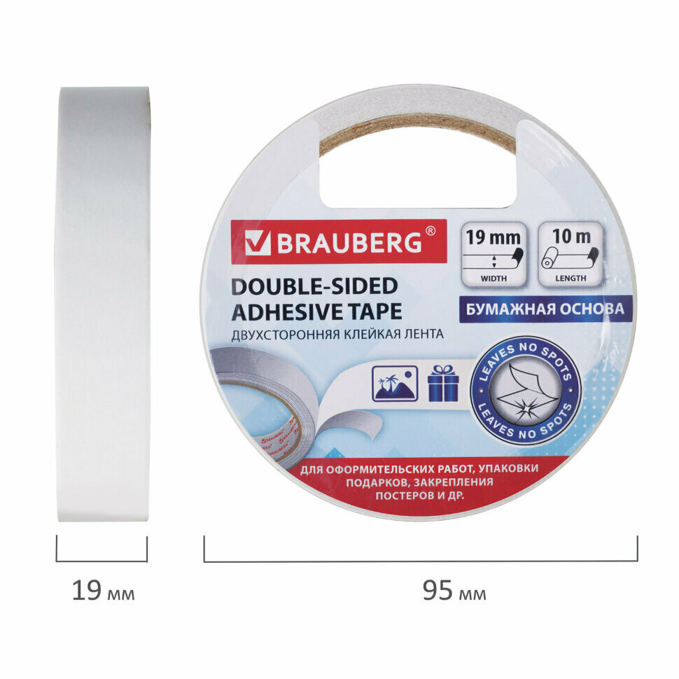 Клейкая лента двусторонняя Brauberg (19 мм х 10 м, бумажная основа)