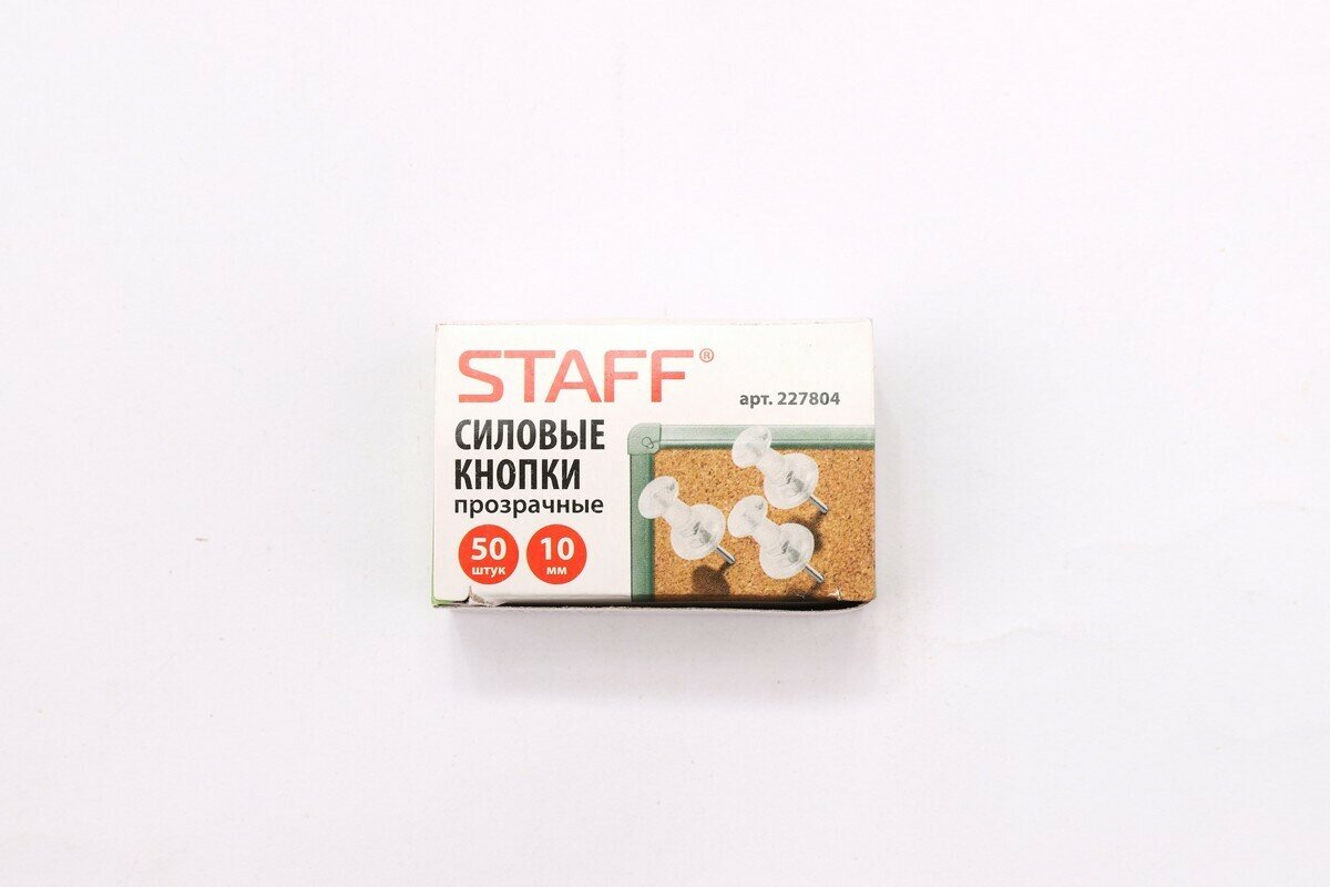 Силовые кнопки-гвоздики прозрачные STAFF "Manager", 50 шт., в картонной коробке, 227804 (цена за 1 ед.товара)