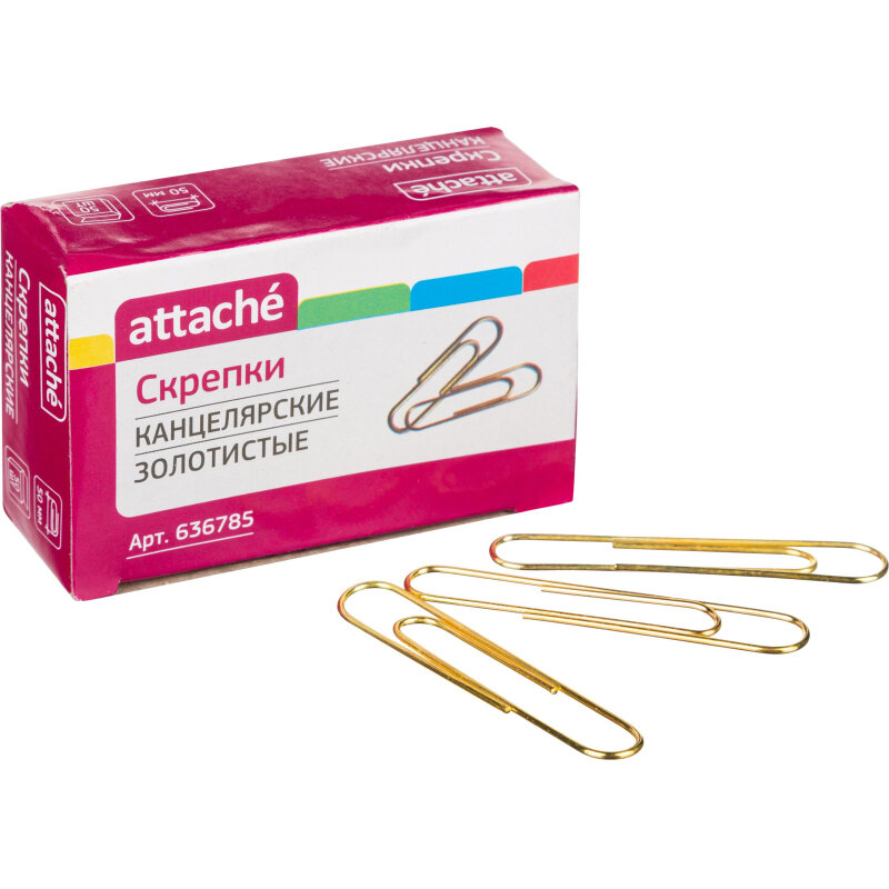 Скрепки Attache золотистые, 50 мм., металлические, 50 шт.в карт.уп