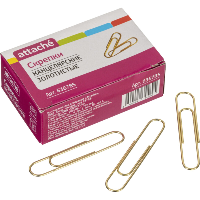 Купить Скрепки Attache, 50, медное, овальная, 50 шт (золотистый)