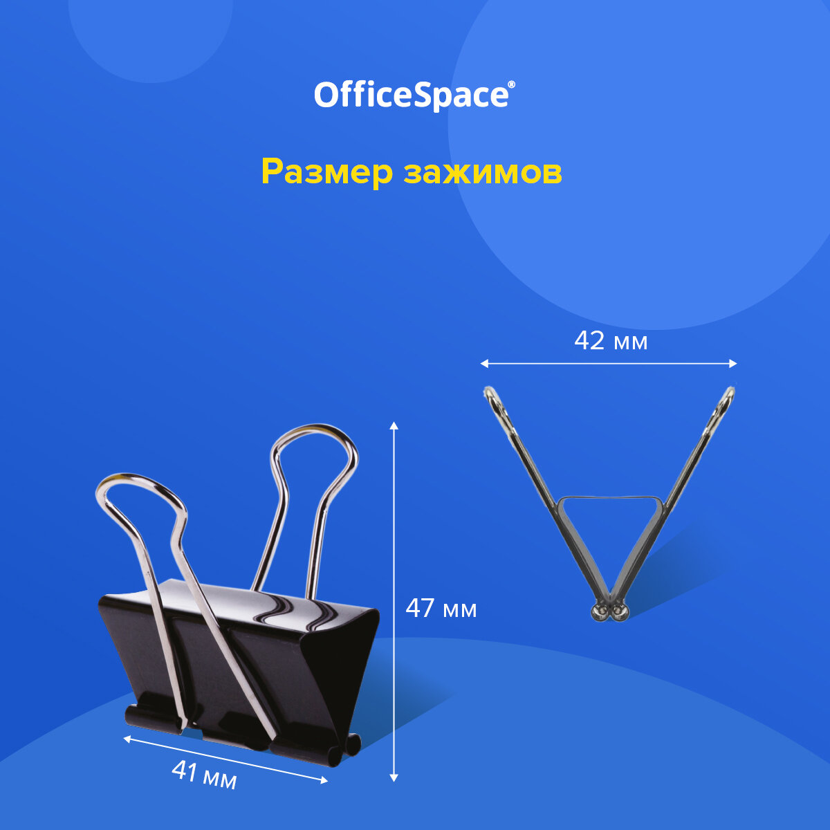 Зажимы для бумаг 41мм, OfficeSpace, черные, картонная коробка BCLBL41_1240 (12 шт. в упаковке)