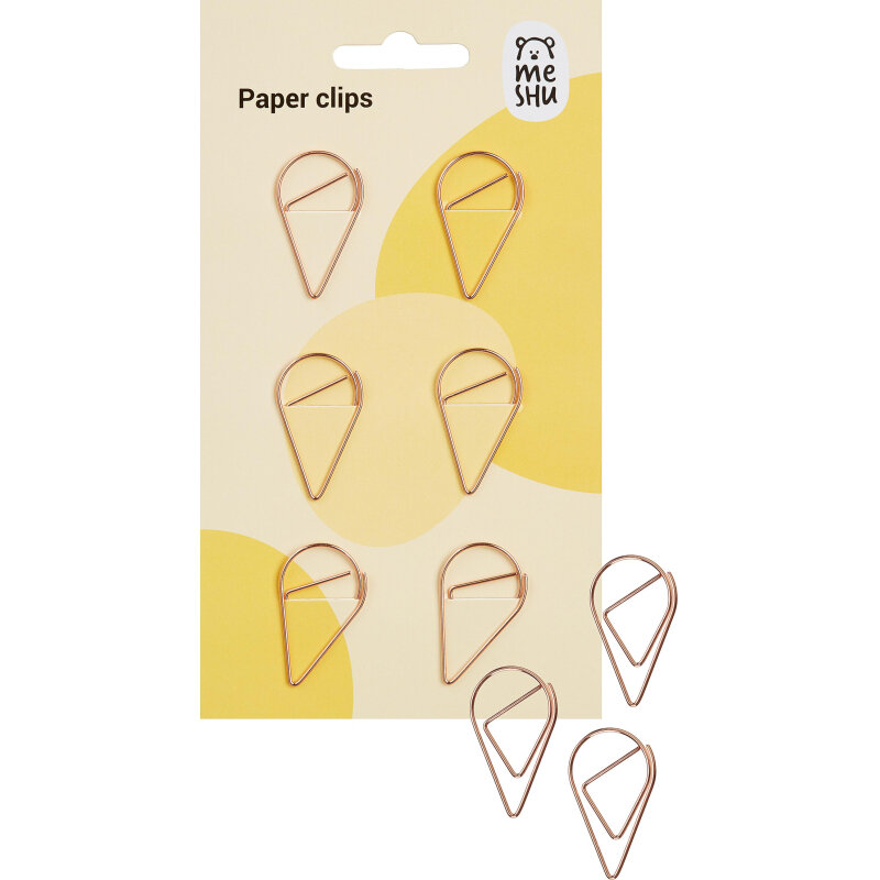 Скрепки фигурные 33мм, Meshu Drops 6шт/уп пакет с европодвесом MS_41591, 1775798