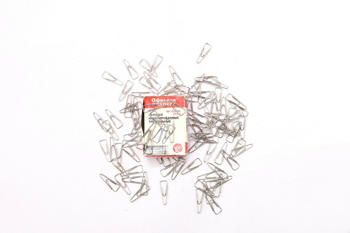 Скрепки Офисная планета 25 мм, никелированные, треугольные, 100 шт (222043)