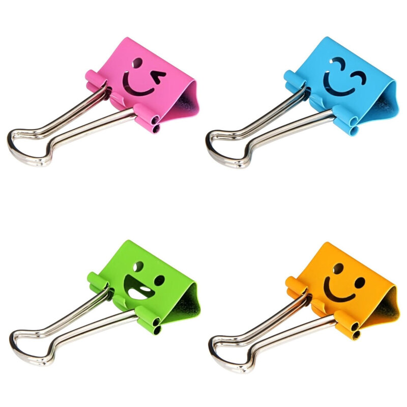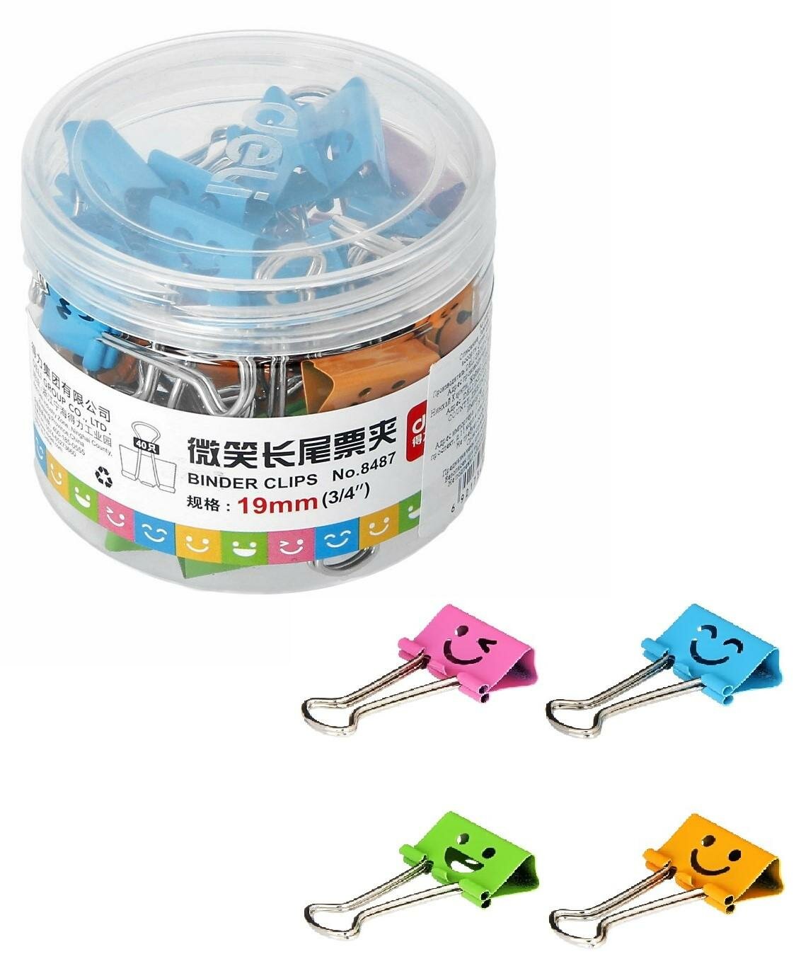 Зажимы для бумаг 19 мм Deli Смайлы цветные 40 штук в упаковке, 1581160