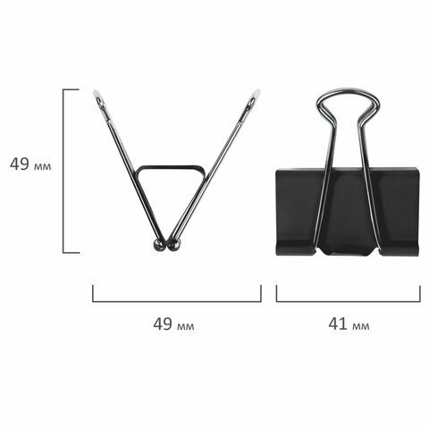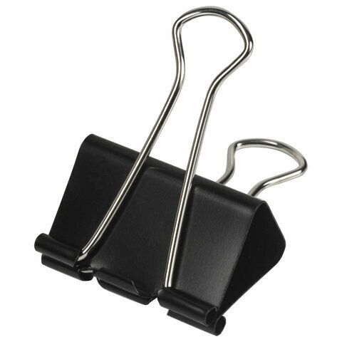 Зажимы для бумаг офисная планета, комплект 12 шт., 41 мм, на 200 листов, черные, картонная коробка, 222001 (цена за 1 ед.товара)