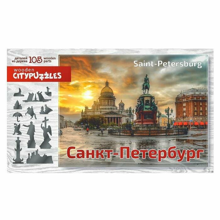Фигурный деревянный пазл Санкт-Петербург, 105 элементов