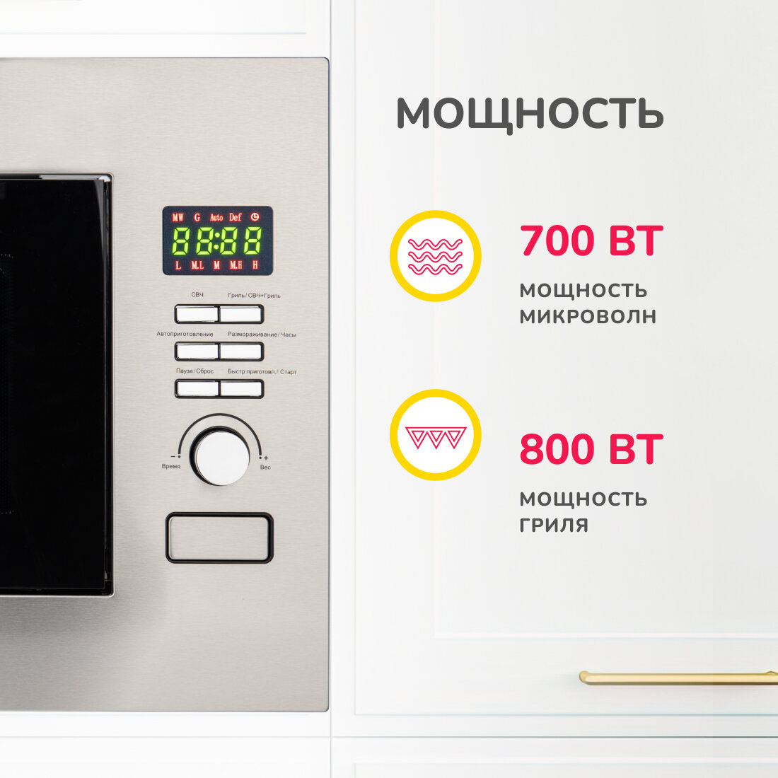 Встраиваемая микроволновая печь Simfer MD2210, 20 литров, 1080 Вт, Нержавеющая сталь