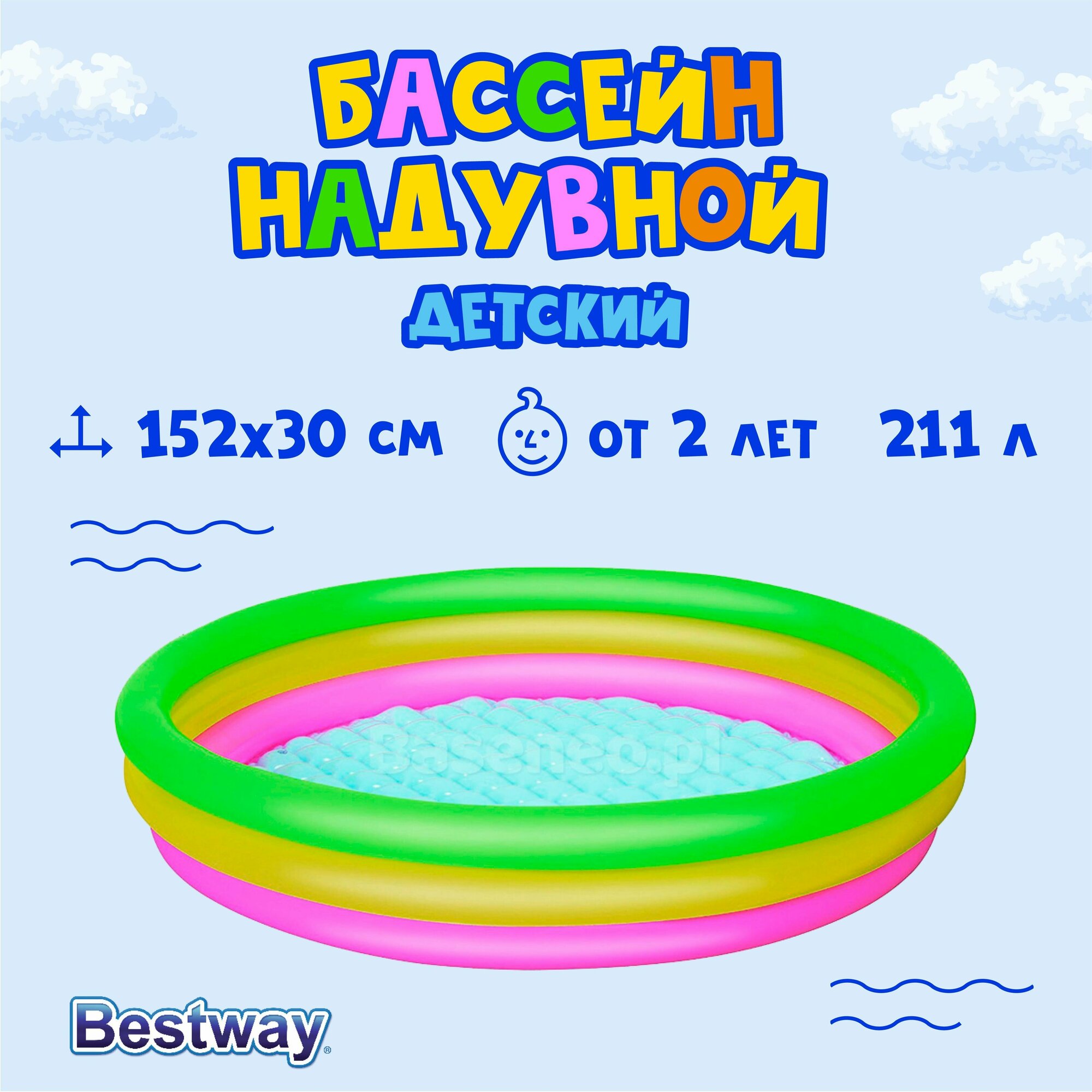 Детский надувной круглый бассейн 152х30 см, 211 л, Bestway "Радуга", артикул 51103