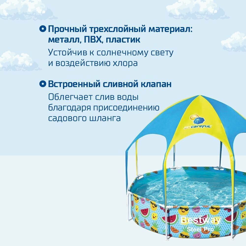 СохранитьBestway Бассейн каркасный круглый с навесом для детей 244х51 см 1688 л. интересное: