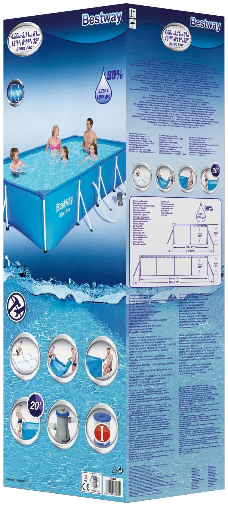 Каркасный бассейн Family Splash 400х211х81 см, 5700 л, Bestway