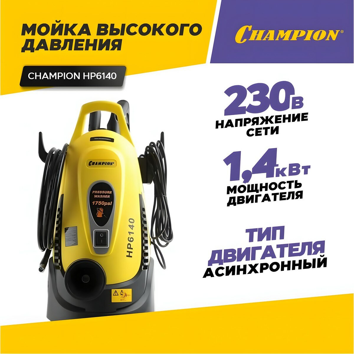 Мойка CHAMPION HP6140 New (1,4кВт 95 бар темп 60С 6л/мин 11.7кг асинхронный)