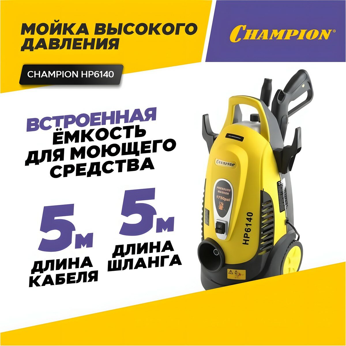 Купить Мойка высокого давления, автомойка CHAMPION НР6140 с встроенной ёмкостью для моющего средства / минимойка для автомобиля, дачи и сада (1400 Вт, 360 л/