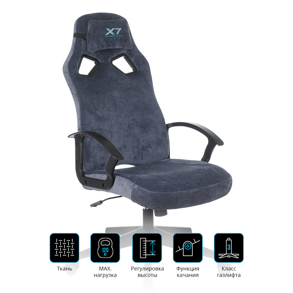 Кресло игровое A4Tech X7 GG-1300, серое, тканевое, геймерское, до 120кг
