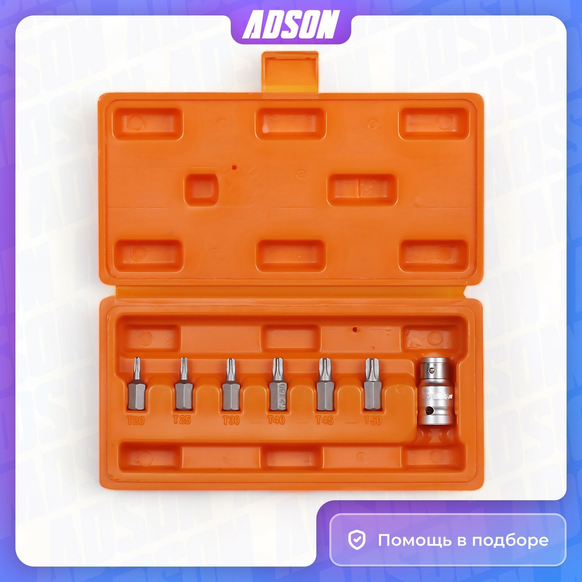 Набор бит вставок TORX 3/8" 30мм с держателем бит 1/2" DR 7 предметов в кейсе (AT-B-20)