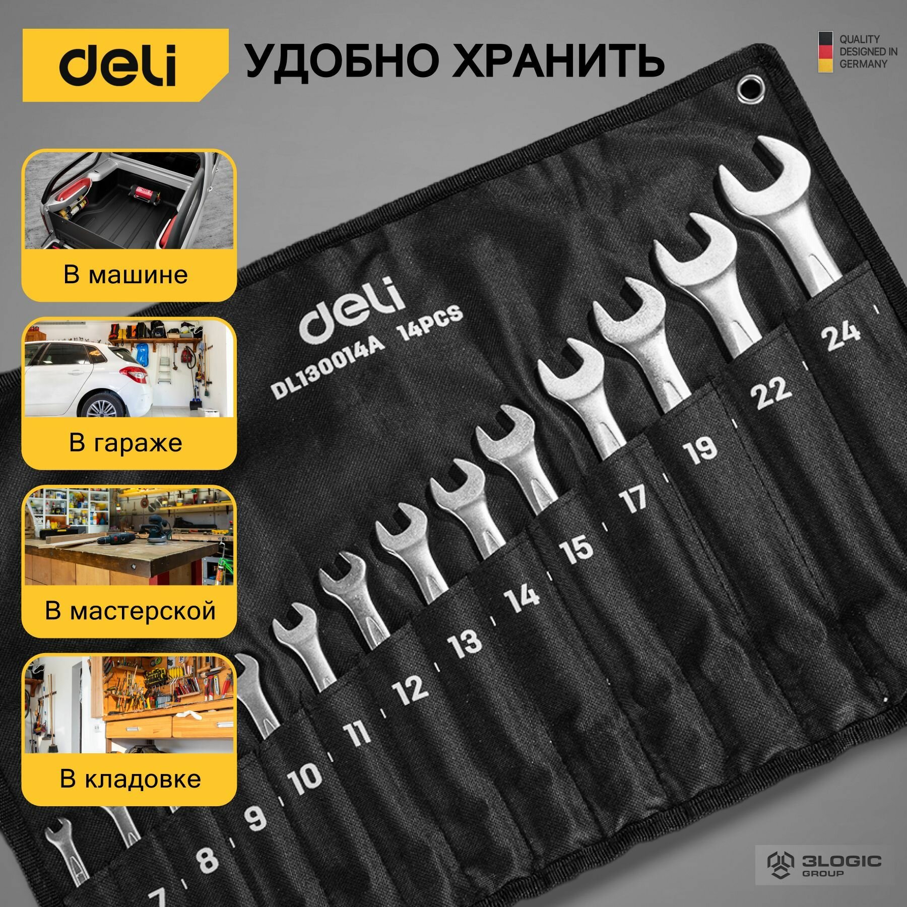 Набор комбинированных гаечных ключей 6-24мм/14шт DELI DL130014A (Сталь 40Cr, чехол из ткани oxford)