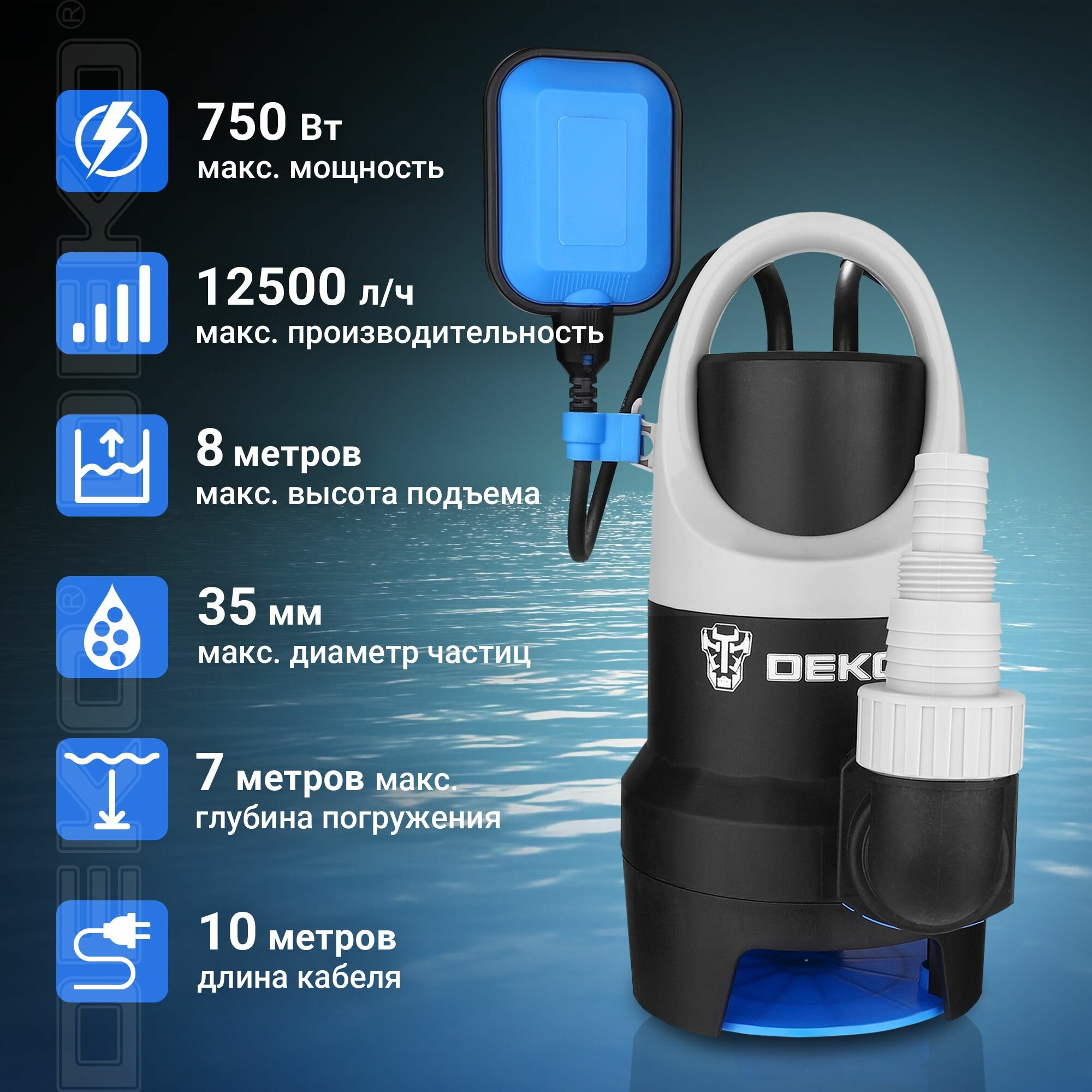 Поверхностный насос дренажный насос DEKO DWP-750P (750 Вт) белый/синий