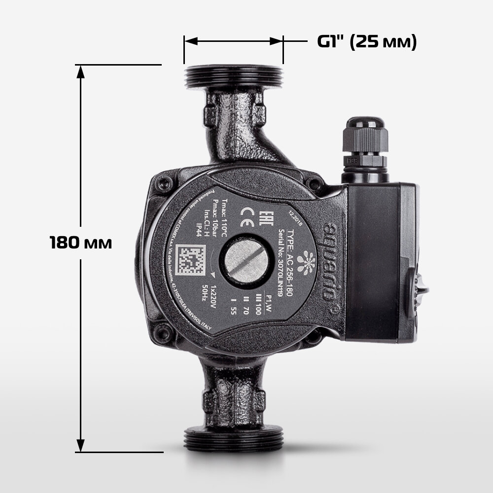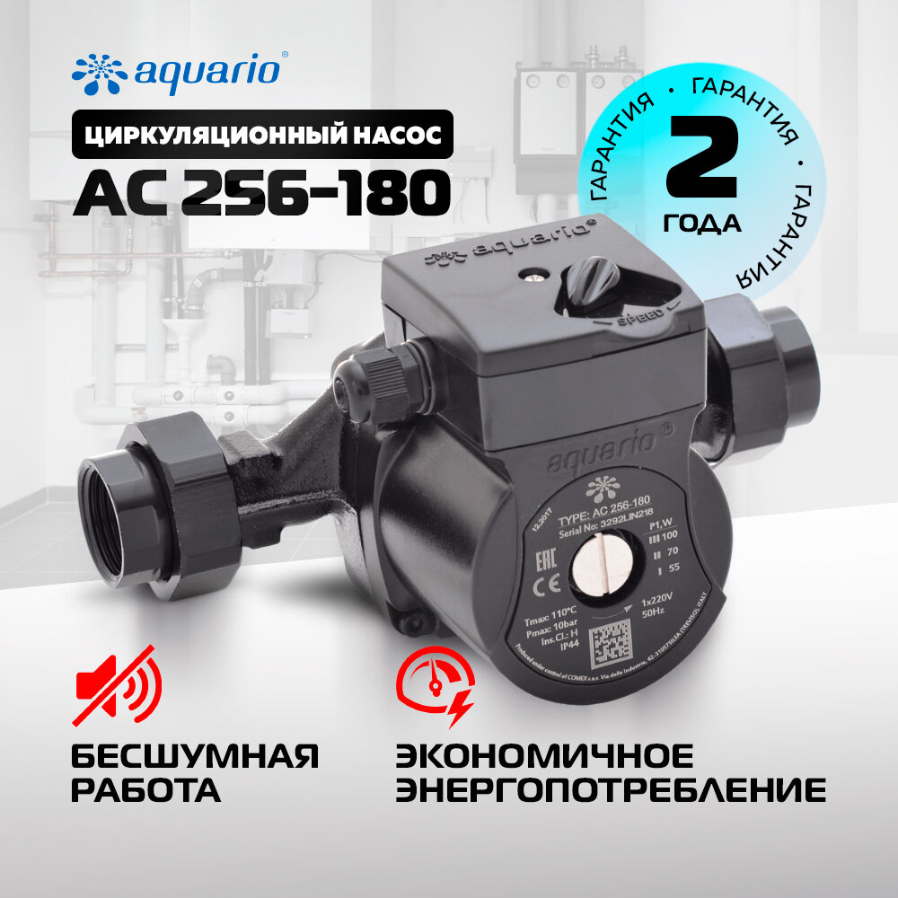 Насос циркуляционный Aquario AC 256-180, L-180, H-6м, Q-4м3/ч, G1"ВР, гайки в компл., 3-х ск., 220В