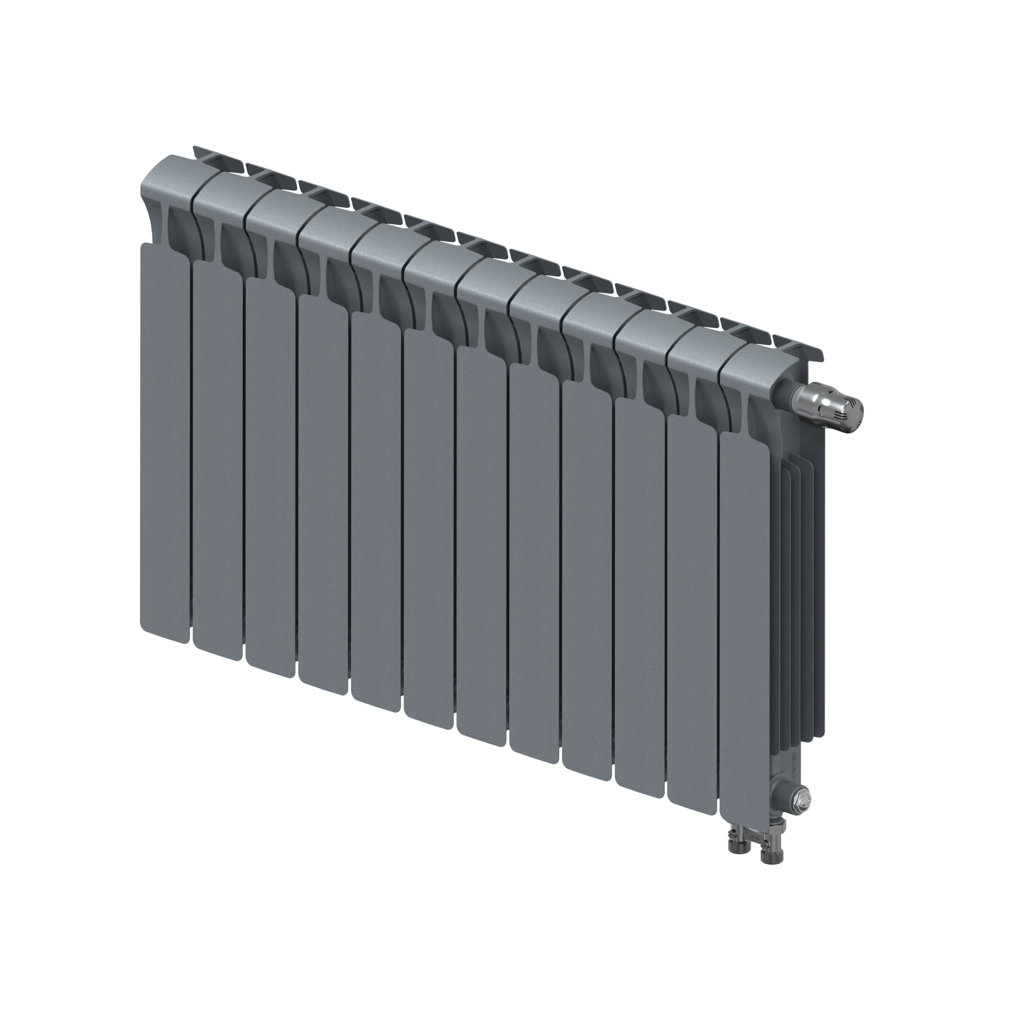 Радиатор биметаллический Rifar Monolit Ventil 500, 12 секций, Нижнее подключение правое (MVR), цвет Титан
