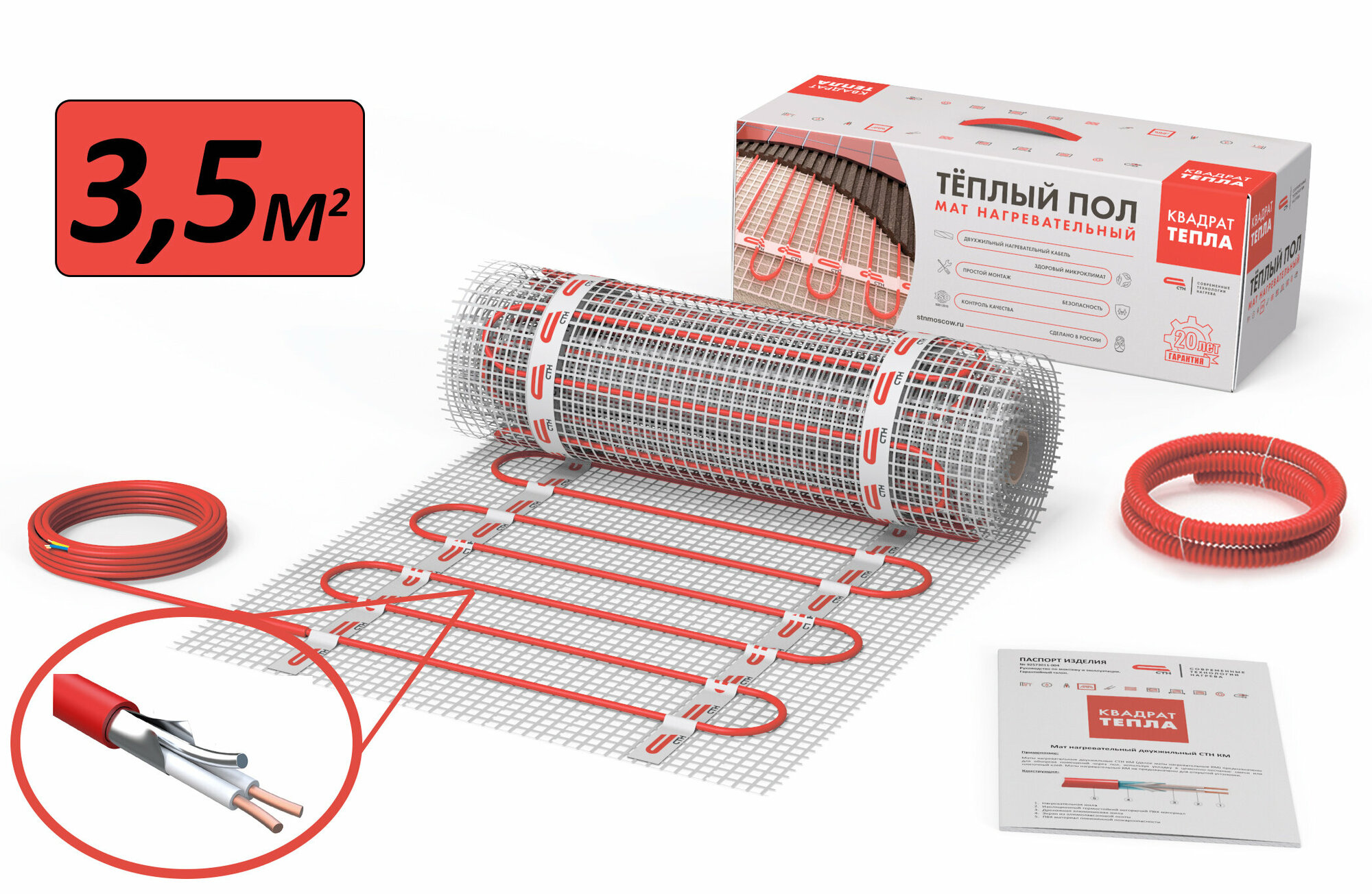Теплый пол СТН "Квадрат Тепла" КМ-525, мощность 525Вт, площадь 3,5м²