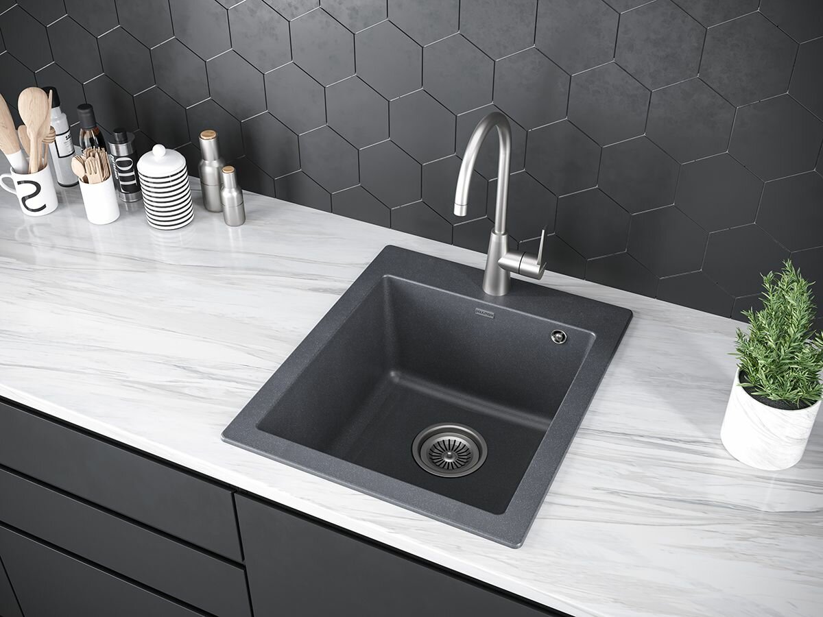 Кухонная мойка Paulmark KANTE 45, черный, 460х510 мм PM104651-BL Искусственный камень