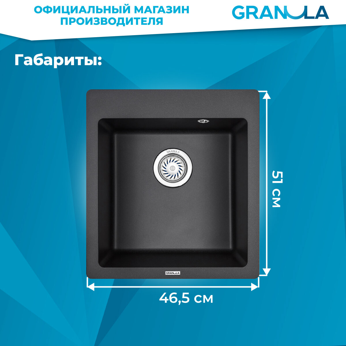 GRANULA мойка кухонная кварцевая GR-4651 465*510 мм черный