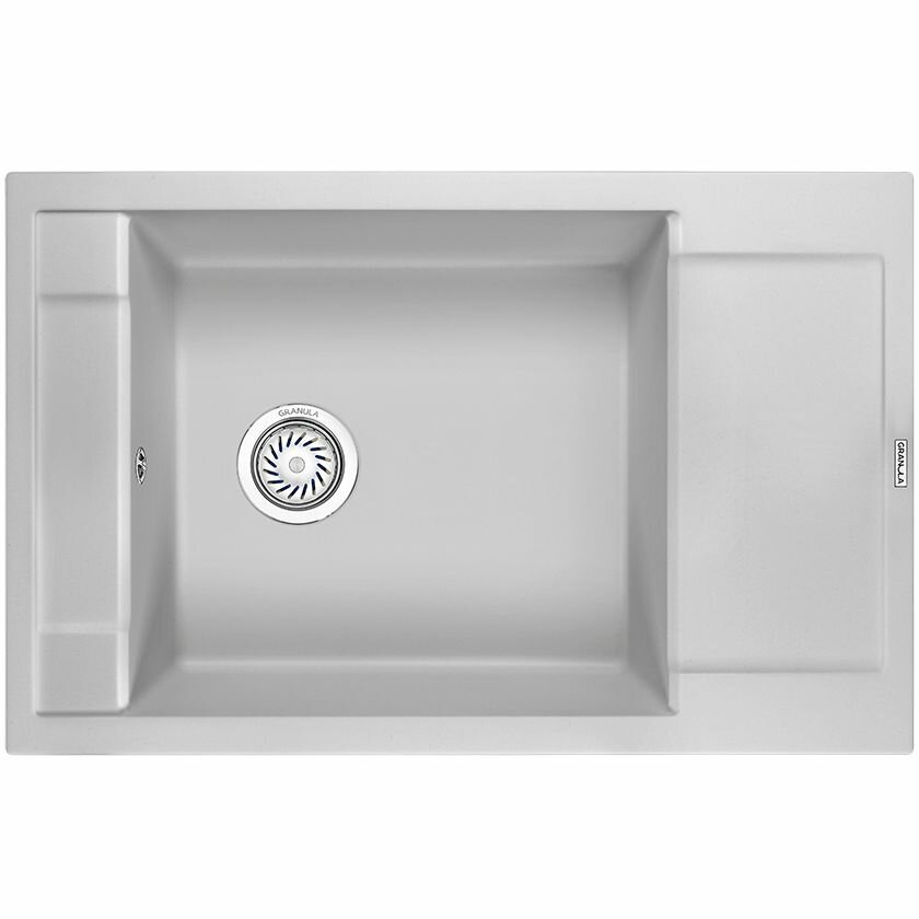 Кухонная мойка кварцевая Granula GR-7806 прямоугольная с крылом, врезная, чаша 440x430, цвет арктик (7806wh)